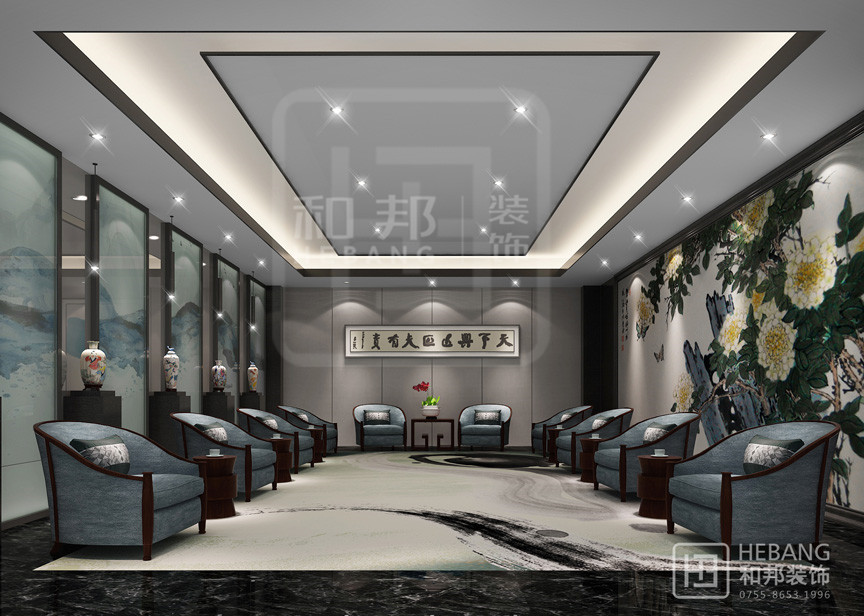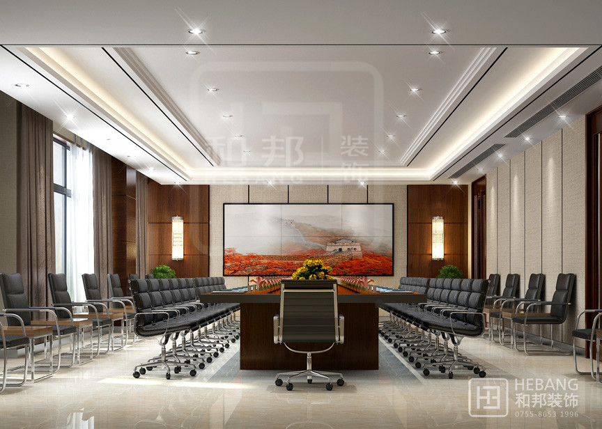 以華麗的裝飾、濃烈的色彩、精美的造型達到雍容華貴的裝飾效果而現代的辦公場所并沒有給人以距離感,它是親和的也是愜意的,并且具有很強的實用性。